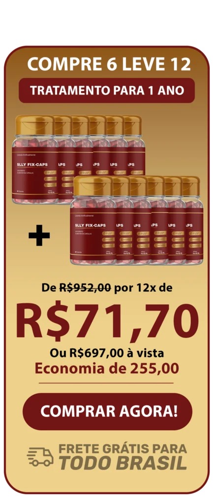 O SLLY FIX-Caps foi criado para mudar isso. Sua fórmula potente com Inulina + Pectina Cítrica age direto nas causas do ganho de peso e acelera o metabolismo, controla a fome e faz o corpo queimar gordura naturalmente, sem sofrimento.